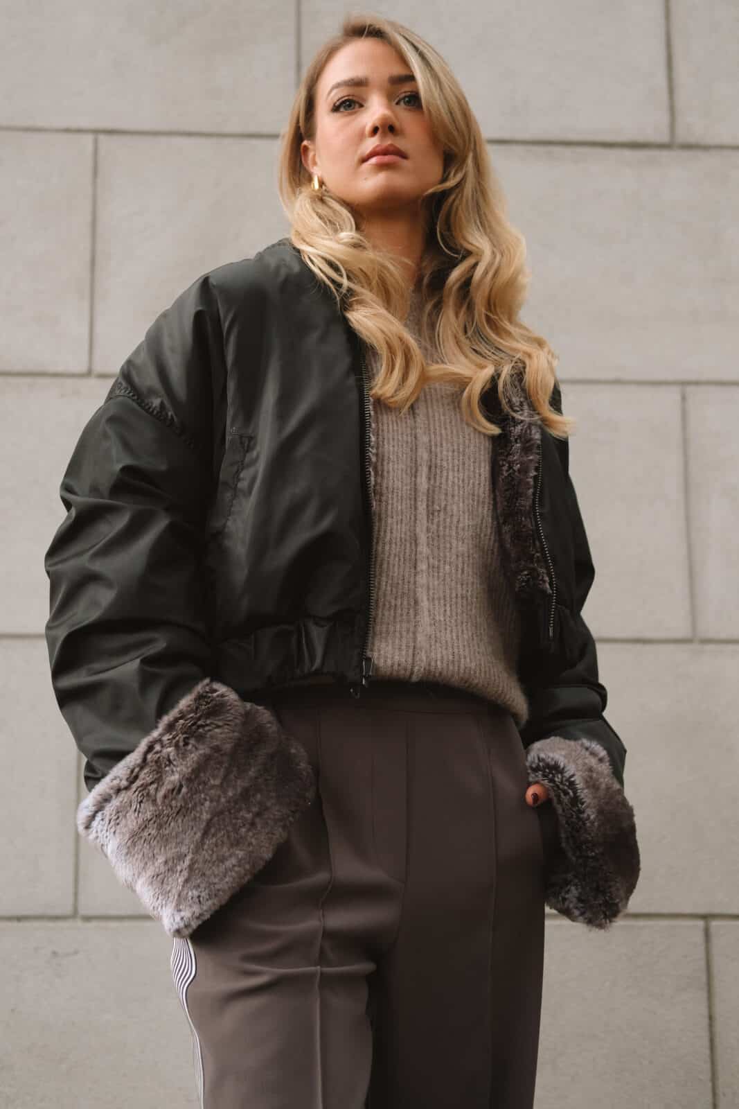 Kinski Wild Jacket Faux Fur Grey Mix with Black Taffeta