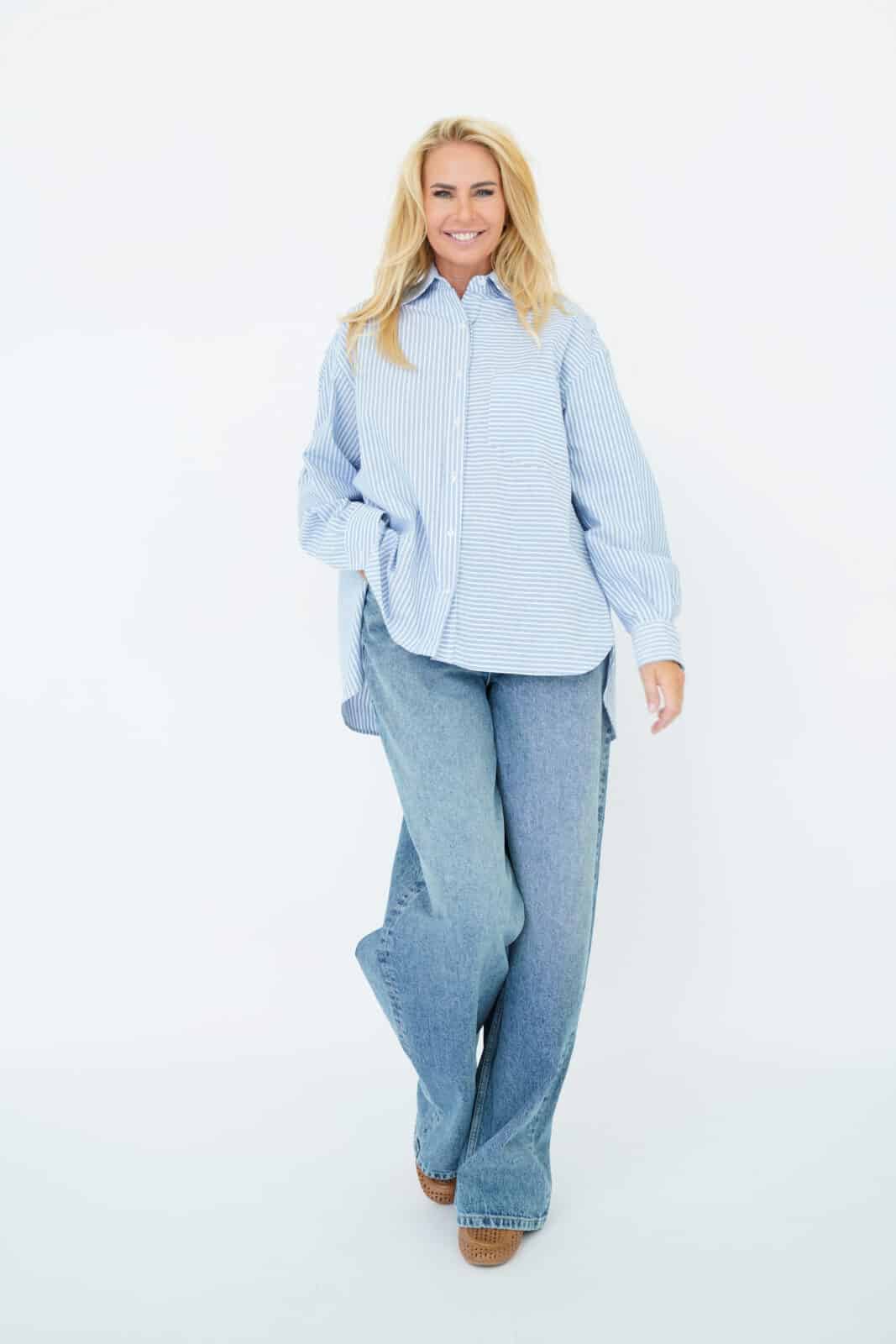 SOUTH BLOUSE Blue – White Oxford Digi Stripe