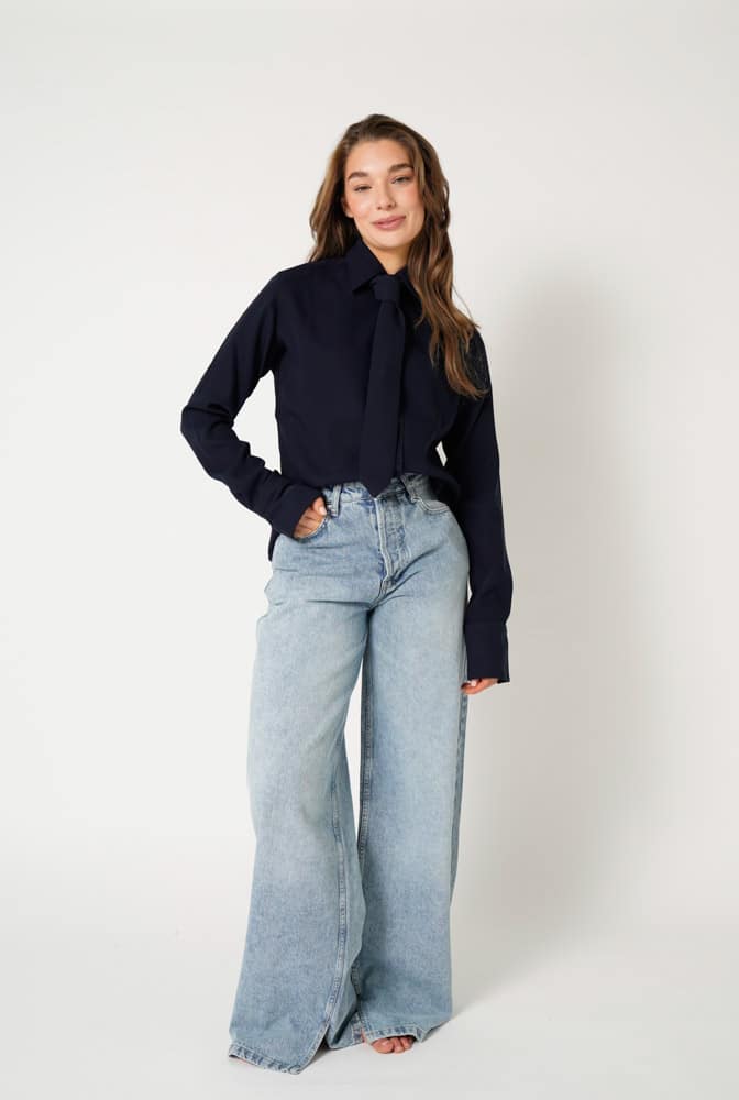 MACLAINE BLOUSE DENIM SILVER STRIPE