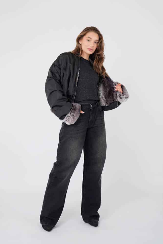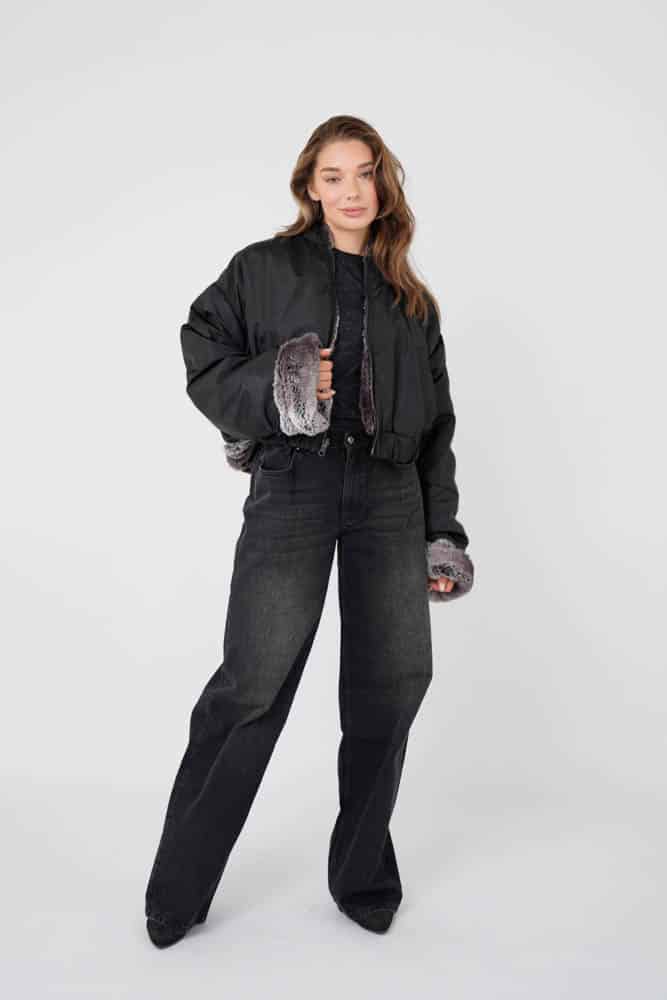 Kinski Wild Jacket Faux Fur Grey Mix with Black Taffeta