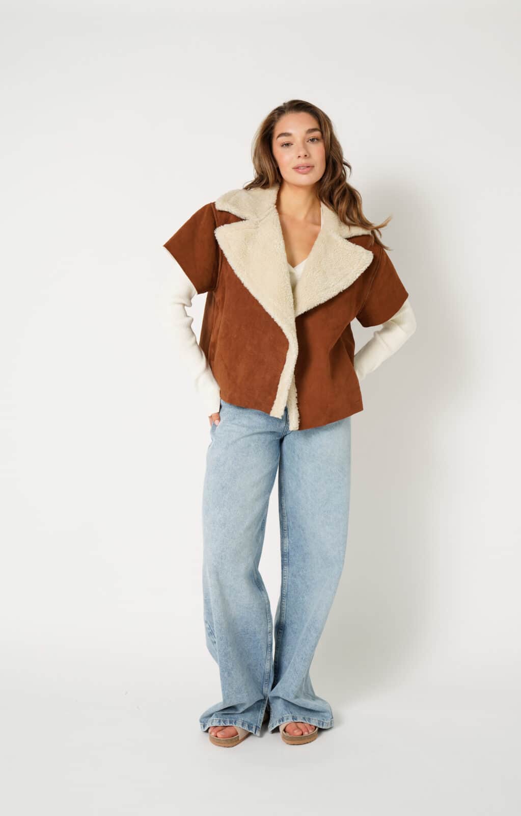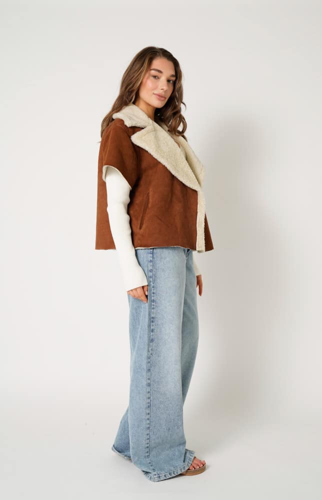 Cardigan Cape Louise Cognac FAUX Fur Sherling