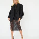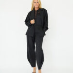 Ellemieke draagt graag een maat M en is 1.77cm groot, product valt op maat. Kies dus uw gebruikelijke maat. Dit is een oversized model