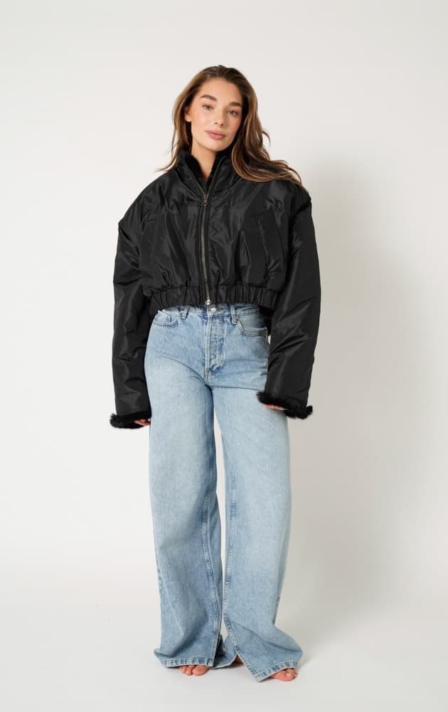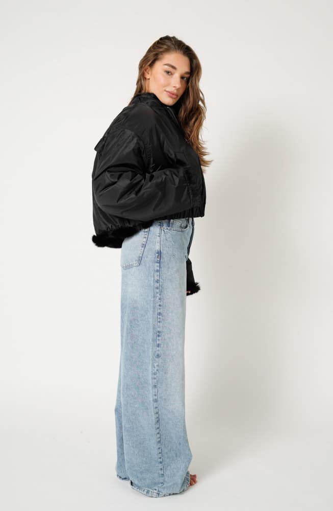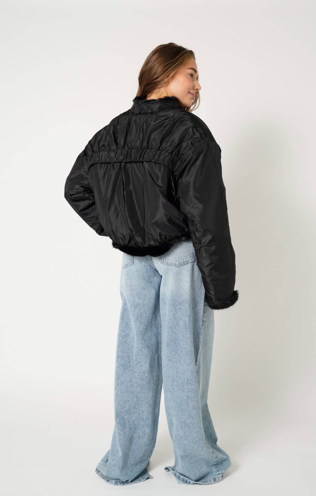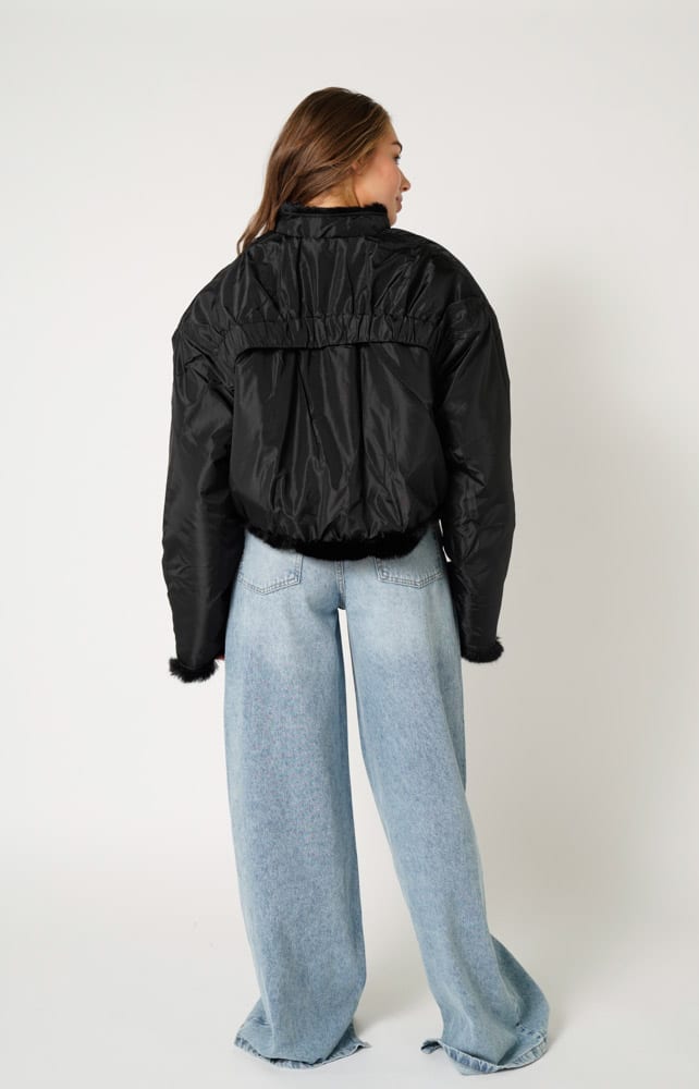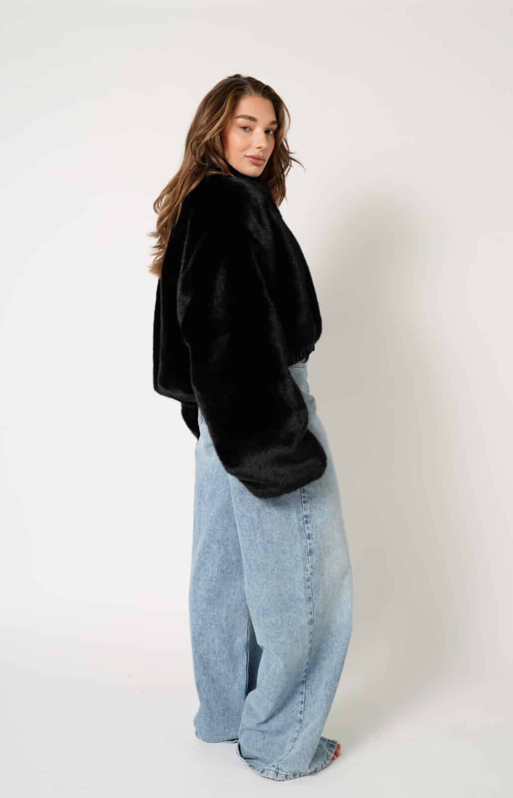 Kinski Wild Jacket Faux Fur Black with Black Taffeta