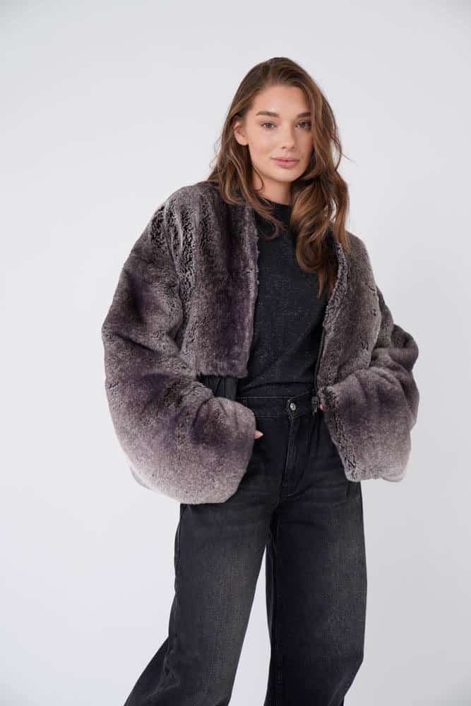 Kinski Wild Jacket Faux Fur Grey Mix with Black Taffeta